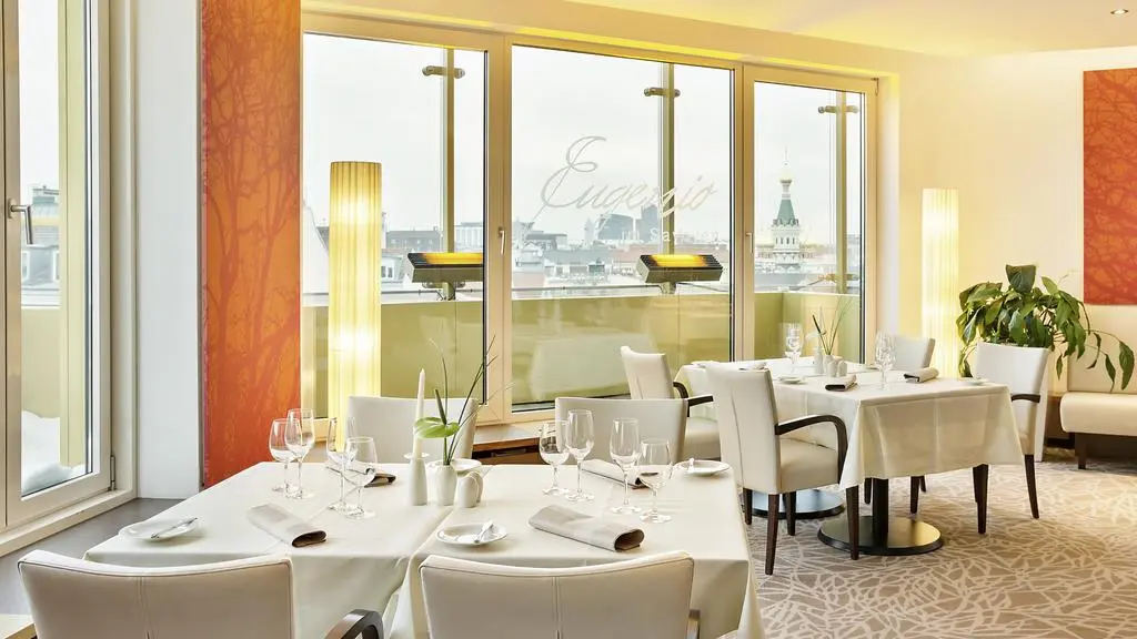 В ресторане „Eugenio“ Вы сможете побаловать себя отличными блюдами, приготовленными замечательной командой поваров. Насладитесь великолепным качеством, которое вызовет даже у настоящих гурманов довольную улыбку на лице! И все это в ресторане с чудесным видом на Вену, высоко над крышами города.