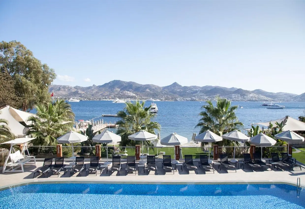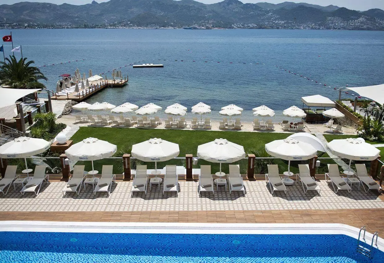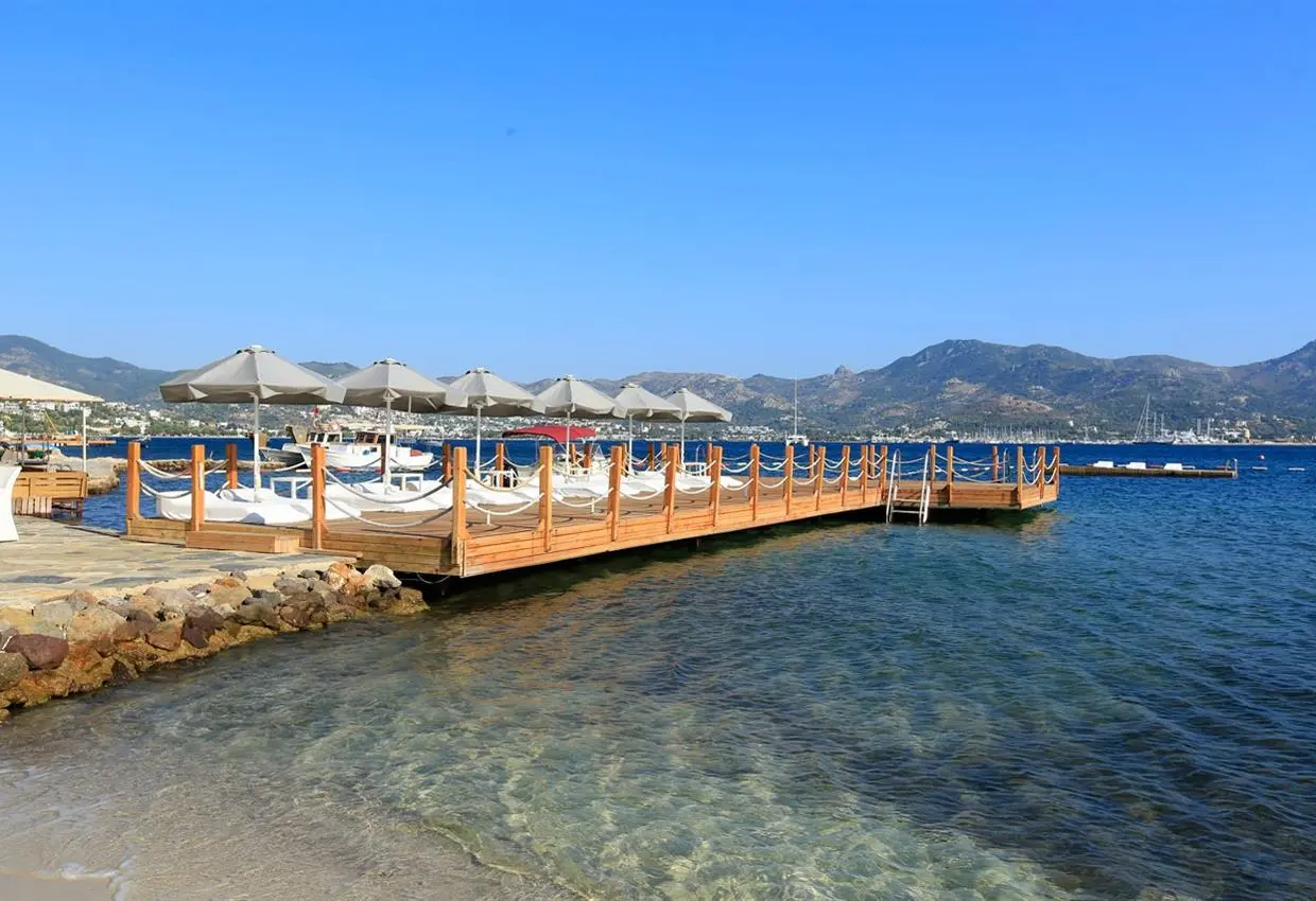 расположен в 50 км от аэропорта и в 25 км от центра Бодрума, 3 км до центра местечка Ялыкавак, на берегу моря