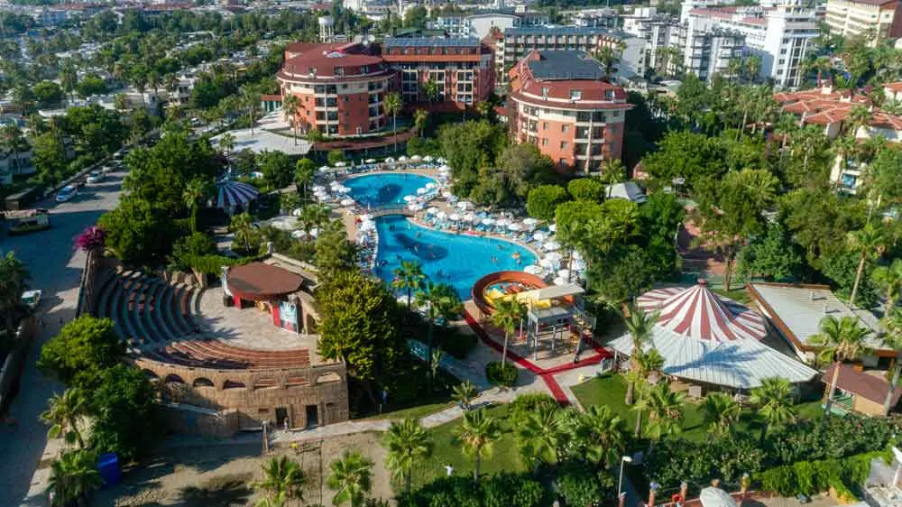 Palmeras Beach Hotel с собственным песчано-галечным пляжем расположен на побережье прекрасного Средиземного моря, в туристическом районе Конаклы. Отель находится в 120 км от аэропорта Анталии, в 13 км от центра Аланьи и всего в 200 м от центра поселка Конаклы.