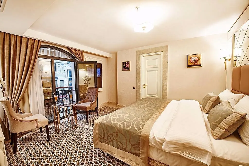 Двухместный номер Делюкс (Двухместный номер с 1 кроватью и сауной. Двухместный номер с 1 кроватью оснащен кондиционером и телевизором с плоским экраном и кабельными каналами. В числе удобств собственная ванная комната и балкон с видом на сад. В распоряжении гостей 2 кровати.)