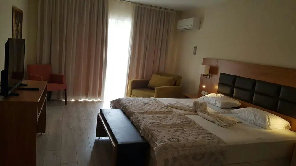в 95 км от аэропорта г. Даламан, в 130 км от аэропорта Милас Бодрума, в 1 км от центра г. Мармарис, в 200 м от городского пляжа.