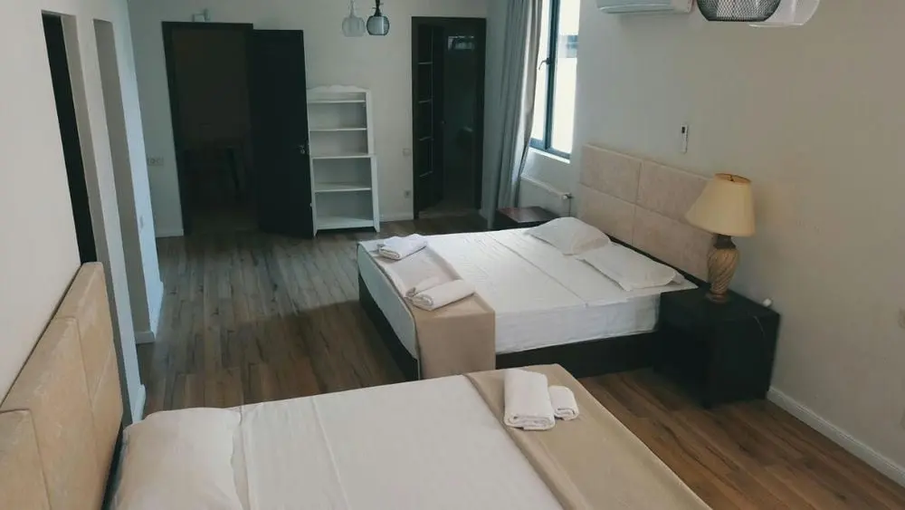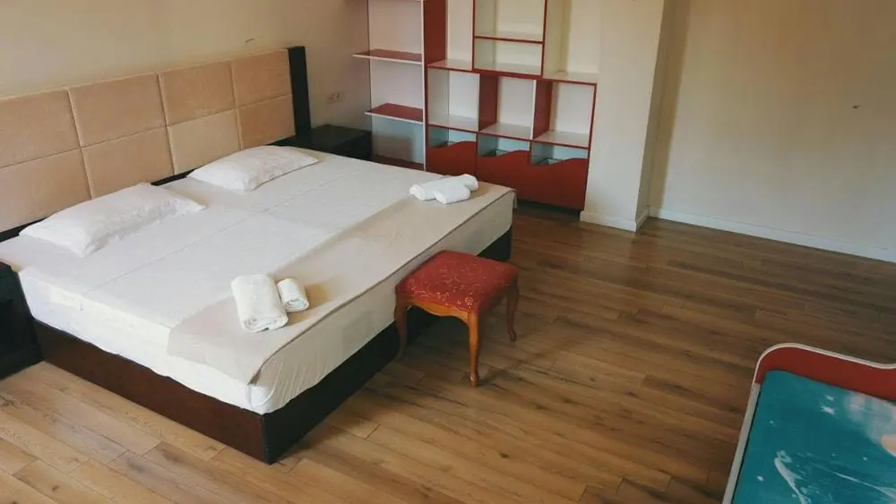 - двухместные номера с двуспальной кроватью в спальной комнате;