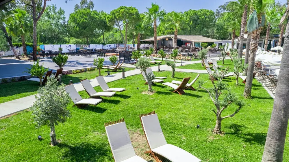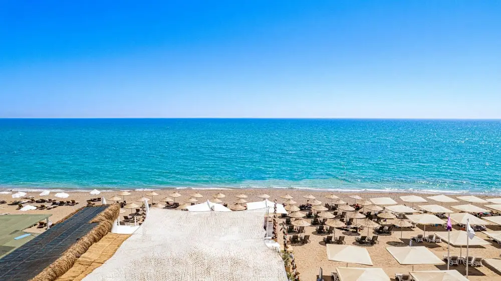 Шезлонги, зонтики, пляжные полотенца - бесплатно.