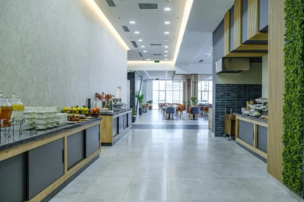 Одно здание, 10 этажей. Отель занимает 6 этажей и начинаится с 5 этажа. На каждом этаже 37 номеров.