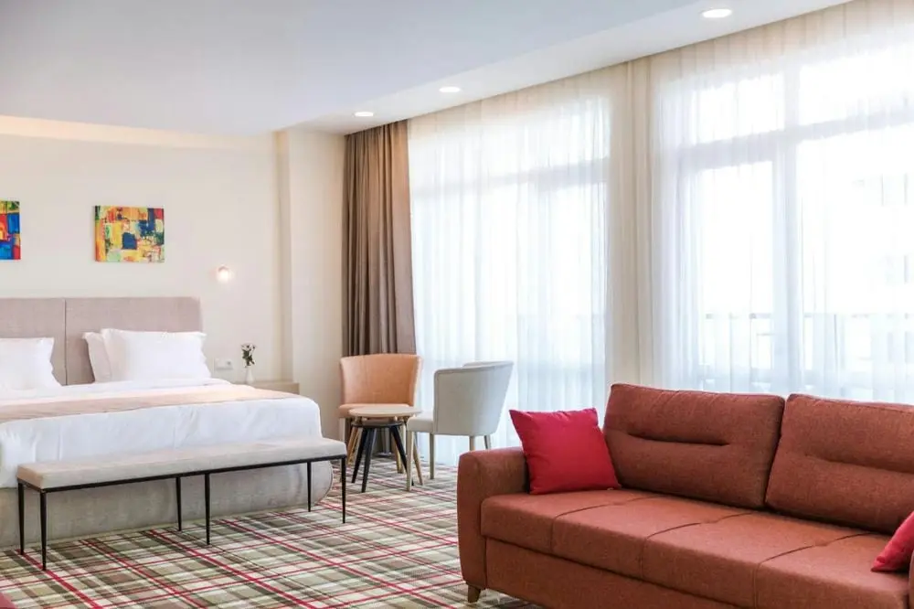 7 Suite (60 м², одна большая двуспальная кровать и диван-кровать. Номер состоит из спальни и гостиной);