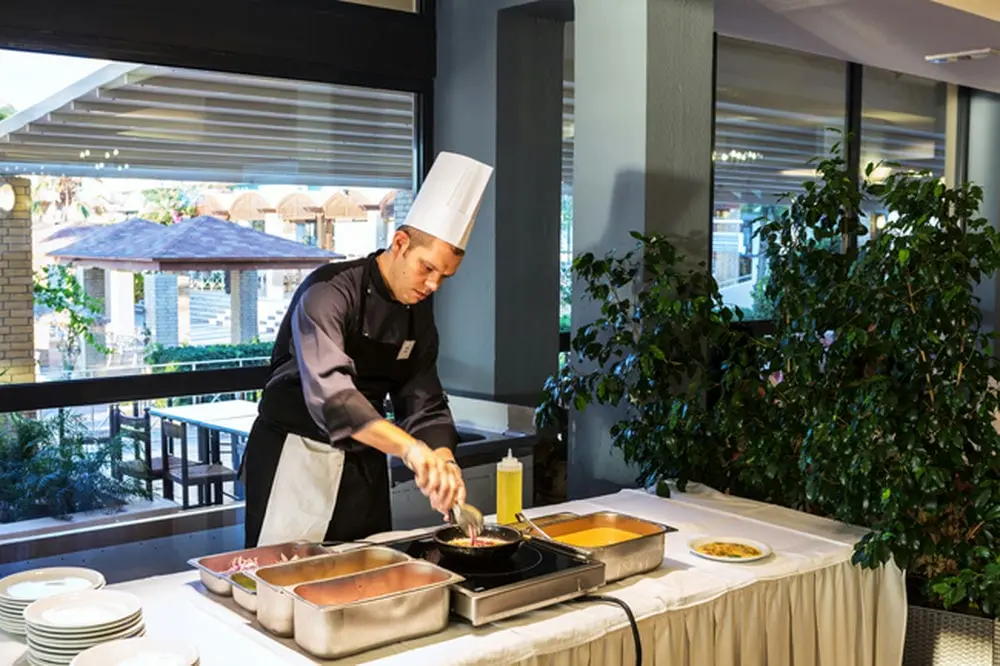 Ужин: 18.30-21.30 (Суп, 8 видов свежих салатов, 6 видов смешанных салатов, выбор сыров, 6 видов горячих первых блюд, 3 вида главных блюд, 6 видов десерта, сезонные фрукты, мороженое. Кулинарное шоу: ежедневно перед гостями готовятся 2 главных блюда. Напитки: вино местного производства, разливное пиво, безалкогольные напитки, соки, вода).