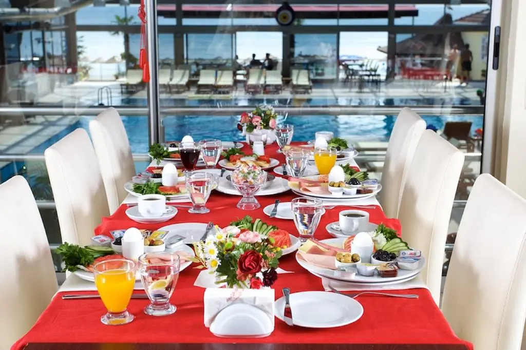В ресторане отеля, откуда открывается вид на крытый бассейн, подают блюда интернациональной и традиционной турецкой кухни. В конце дня в баре отеля гости могут заказать напитки.