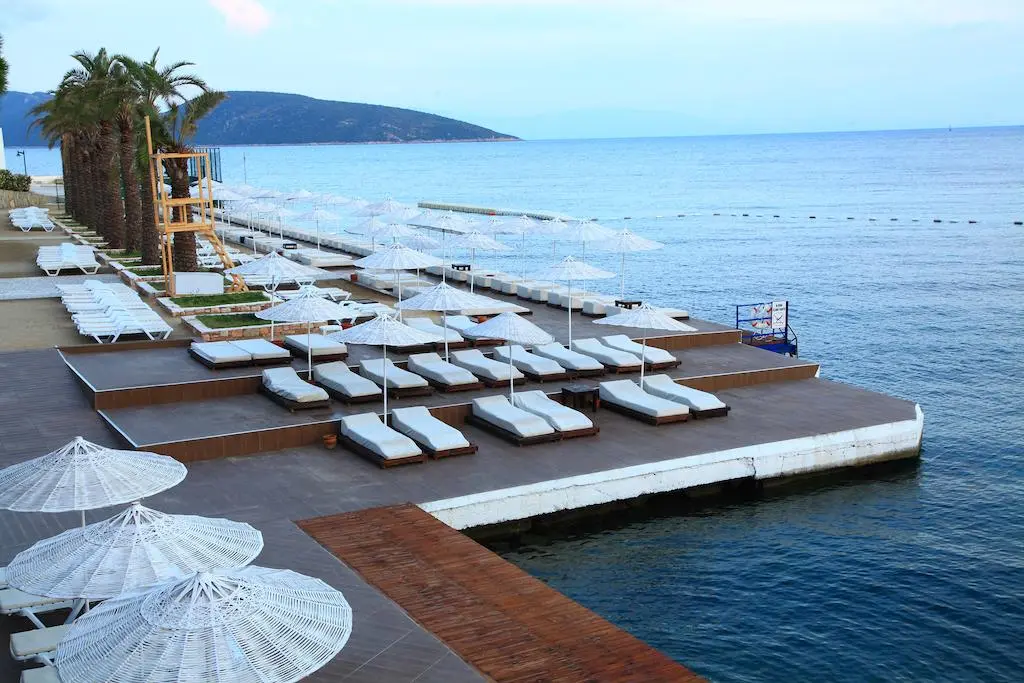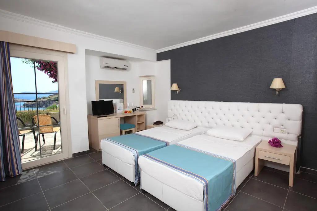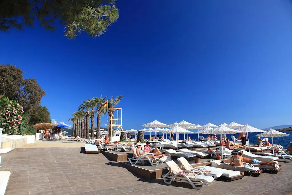 в 40 км от аэропорта Миласа Бодрума, в 222 км от аэропорта Измира, в 205 км от аэропорта Даламана, в 1,5 км от Бодрума, в поселке Бардакчи, на берегу моря.