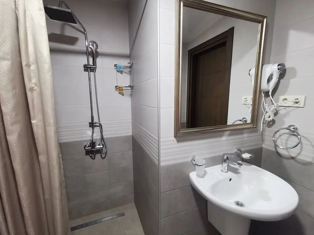 ⦁ В каждом номере: кондиционер, телевизор с кабельными каналами, сейф, холодильник, рабочий стол, бесплатный Wi-Fi, собственная ванная комната с душем/биде, туалетными принадлежностями и халатами