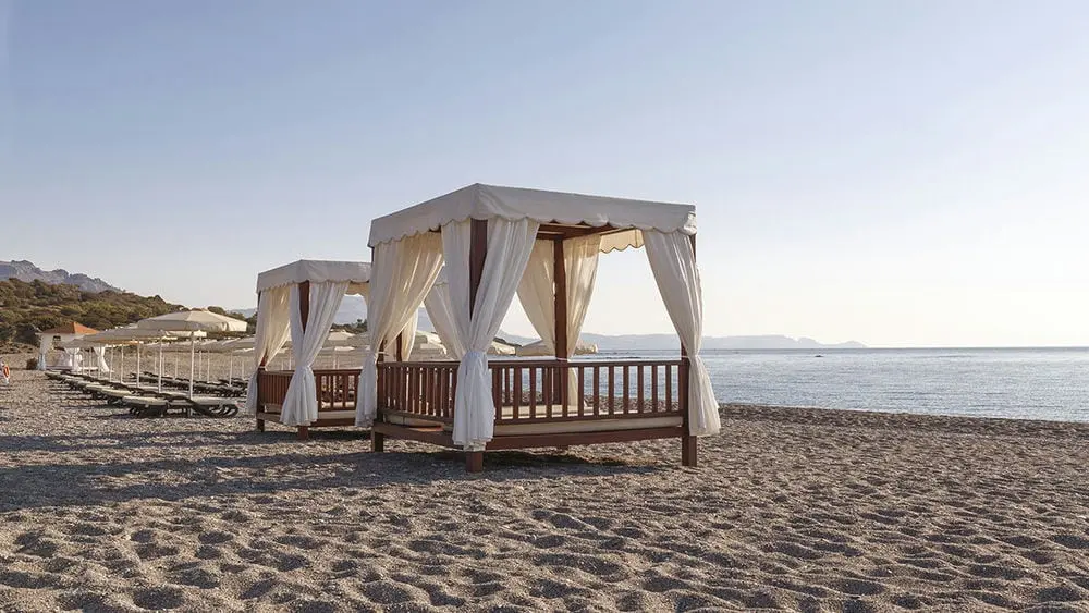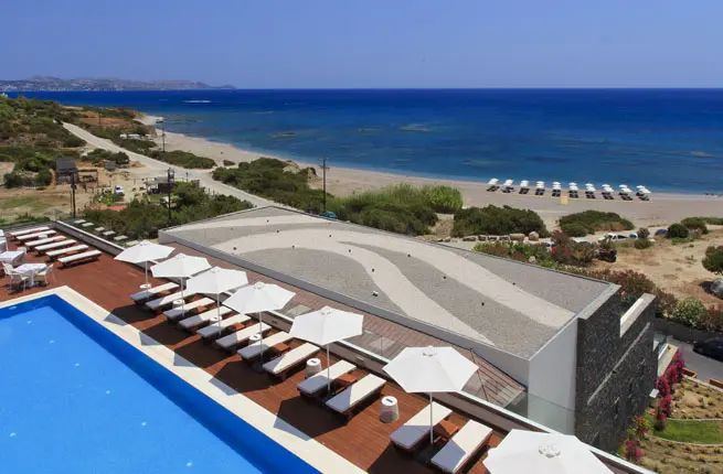 Junior Suite Side Sea View Private Pool (Стильные люксы с просторной террасой, собственным бассейном и шезлонгами, отделанной мрамором ванной комнатой с ванной и душевой кабиной, гостиным уголком с современной техникой.)