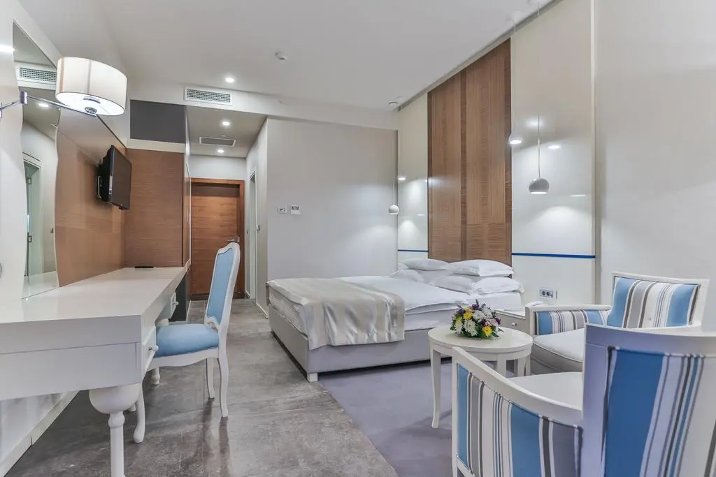 В номерах: балкон, кондиционер, LCD-телевизор (кабельное ТВ с русскими каналами), сейф, мини-бар, Wi-fi интернет, фен, халаты, полотенца, терраса. Ежедневная уборка номеров, смена полотенец через день, смена постельного белья два раза в неделю.