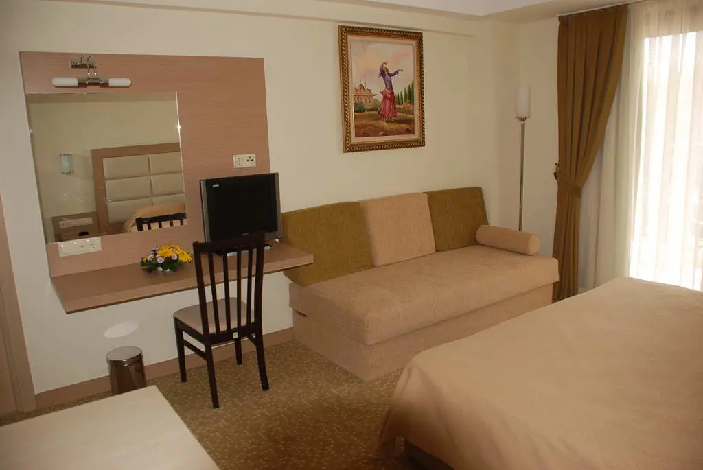 Описание номера: сейф: в номере, платно, смена белья: 2 раза в неделю, кондиционер: индивидуальный, уборка номера: ежедневно, телефон, пол: керамическая плитка, русских каналов: 1, балкон, Интернет: Wi-Fi платно, ванна или душ, телевизор: есть