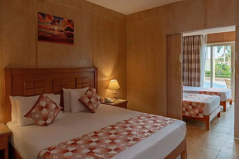 - Swim – Up Номер ( Вид на бассейн) 24 -Спальня с двуспальной кроватью размера «King - size» или двумя односпальными кроватями, ванная комната с душем, первый этаж, терраса