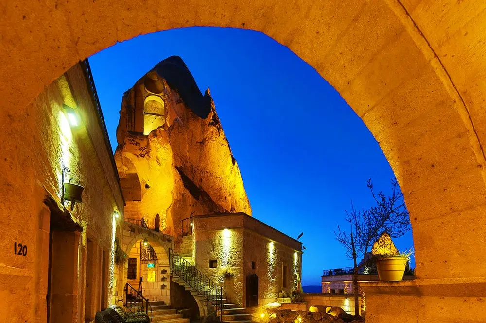 Отель Cappadocia Cave Suites - это экзотическое место, которое сочетает в себе современную роскошь и древнюю уникальную историю хеттского, римского и византийского периодов. Роскошный пещерный отель предлагает 36 номеров, построенных в древних пещерах, высеченных более тысячи лет назад. Cappadocia Cave Suites расположен в городе Гёреме, одном из самых красивых мест региона Каппадокия, на территории парка Всемирного наследия ЮНЕСКО. Фантастический красочный ландшафт делает данную местность природным чудом света. Рядом с отелем можно заняться пешими походами, верховой ездой, прокатиться на воздушном шаре. Во всех номерах есть фен, мини-холодильник, кофеварка и бесплатная корзина с чаем и кофе. Бесплатный Wi-Fi предоставляется во всех номерах. В отеле есть просторный пещерный ресторан, где каждое утро подают обильный завтрак "шведский стол" с региональными деликатесами.