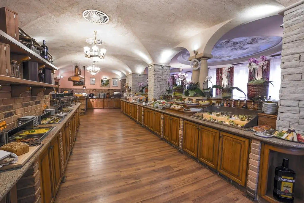 Ресторан Sorrento приглашает своих гостей насладится уютным интерьером и широким выбором блюд буфетной линии. Предлагается неисчерпаемое количество не только исконно чешских, но и западноевропейских блюд. Прекрасное место, чтобы приятно провести время с друзьями за завтраком, обедом или ужином.