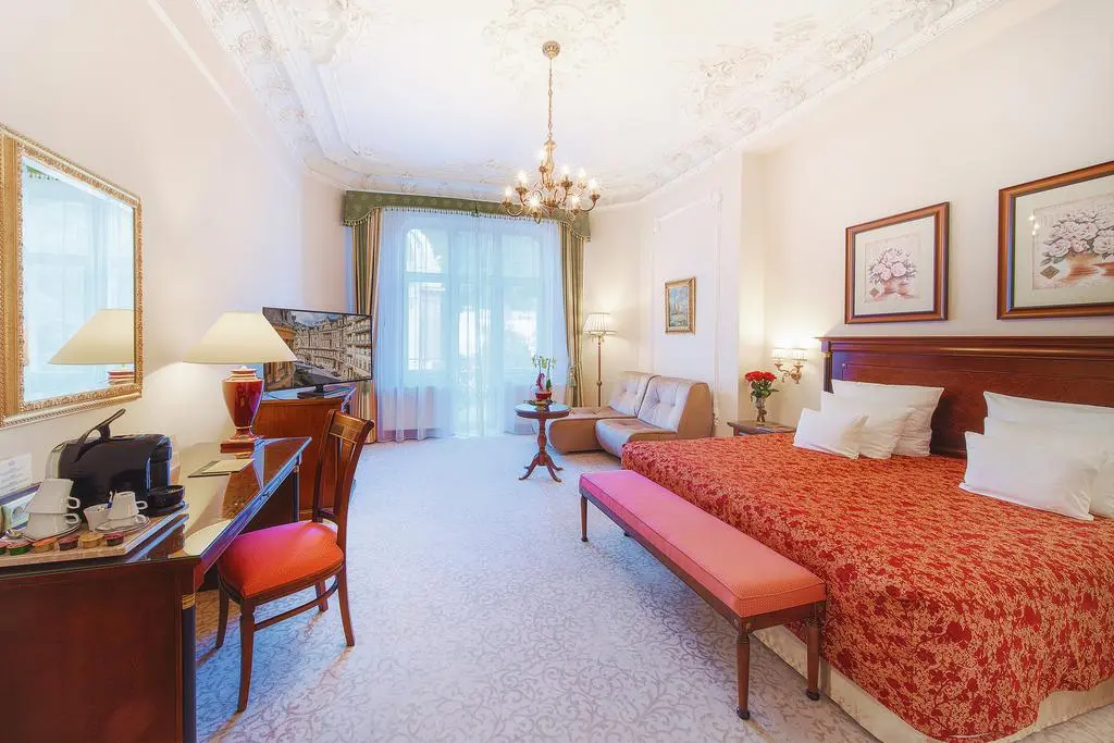 Отель расположен в непосредственной близости от знаменитых курортных колоннад Карловых Вар. Гостям предлагается размещение в 151 номере класса люкс, включая 27 апартаментов, с видом на тихую курортную часть города или тихий сад отеля. Все номера и апартаменты оснащены кондиционером, Wi-Fi, LCD телевизорами, кофе-машиной и мини-баром, также имеется косметическое меню и меню подушек.