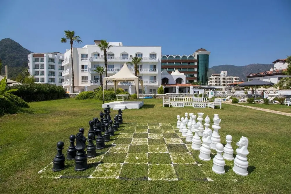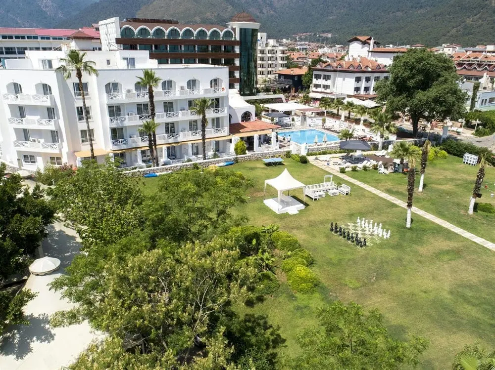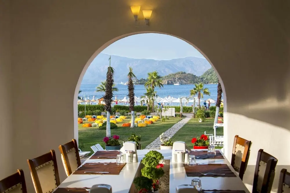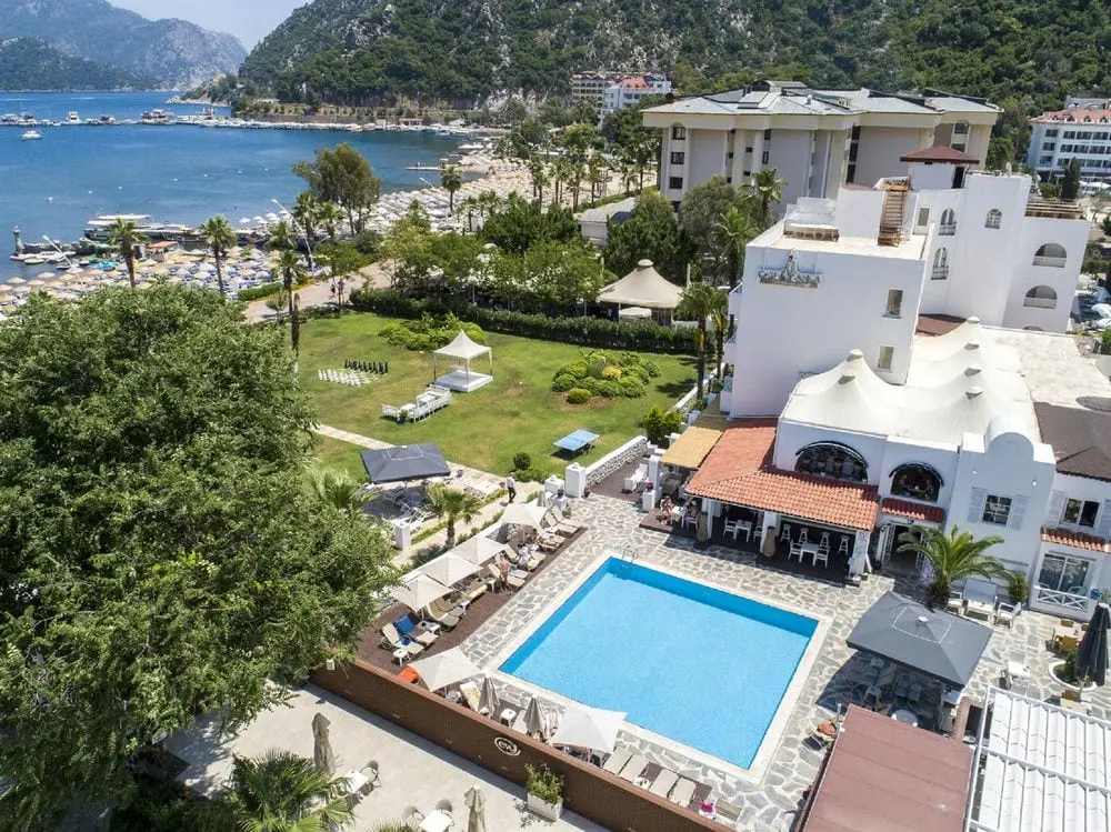 в 105 км от аэропорта г. Даламан, в 140 км от аэропорта Милас Бодрума, в 8 км от г. Мармарис, до центра поселка Ичмелер 1 км, на берегу моря.
