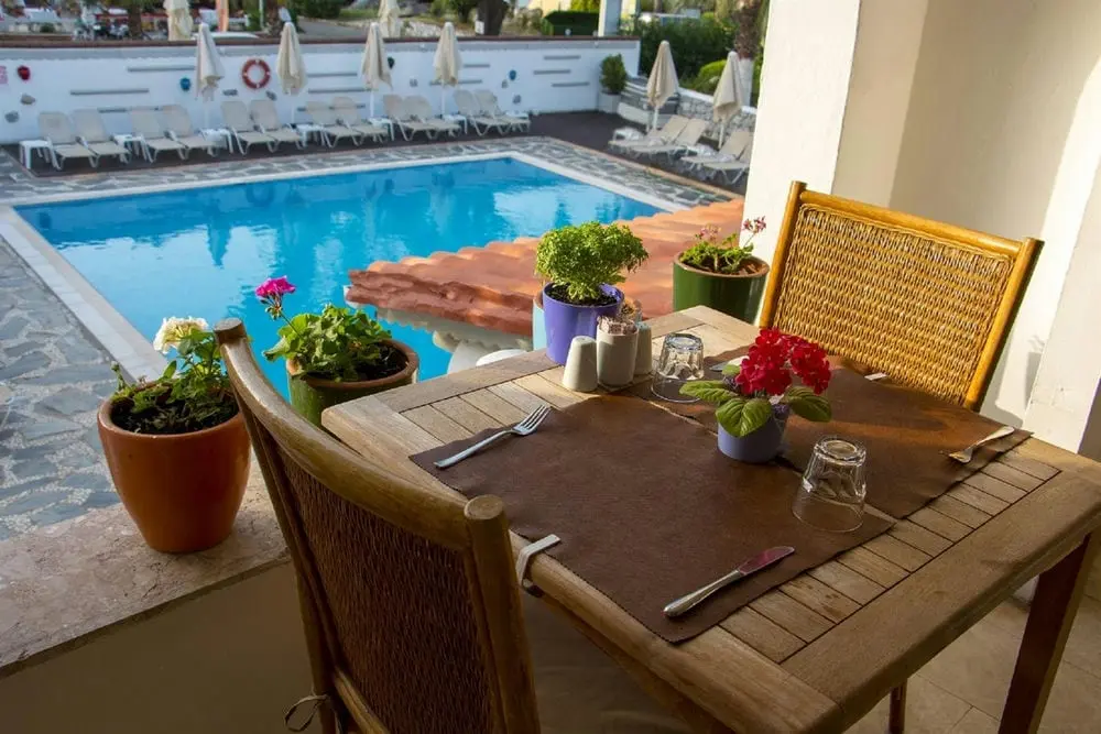 - у бассейна зонтики, шезлонги, матрасы: бесплатно
