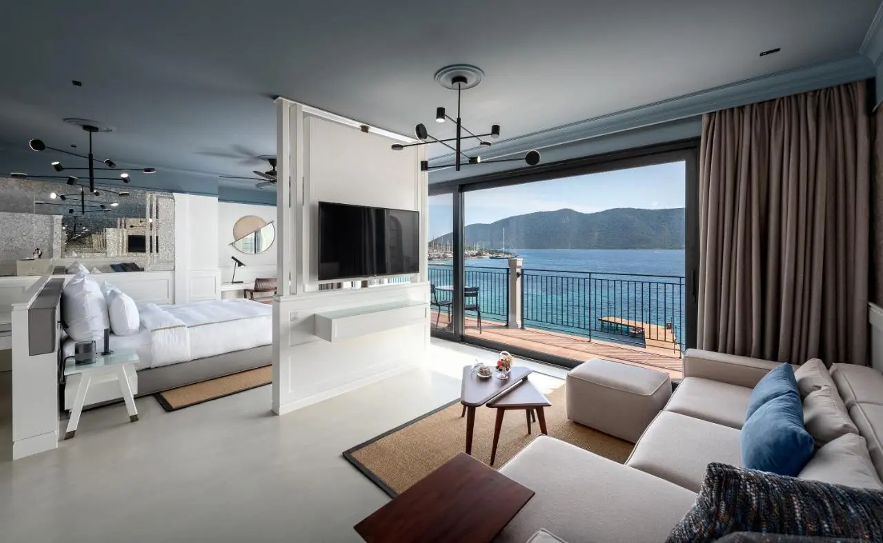 - Bodrum Suite (вид на море, гостиная и спальня, двуспальная кровать, мини-кухня, 2 ванные комнаты (душ), балкон, макс. 4 чел., 100 м2);
