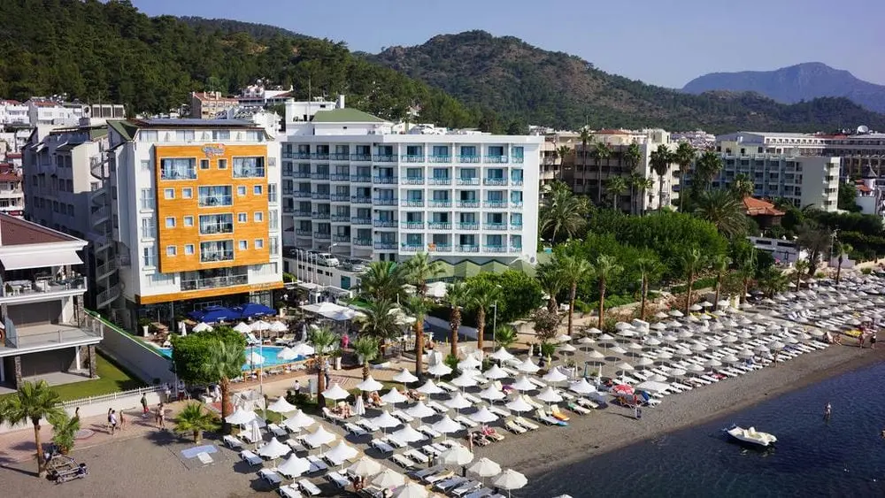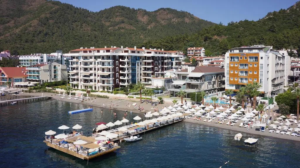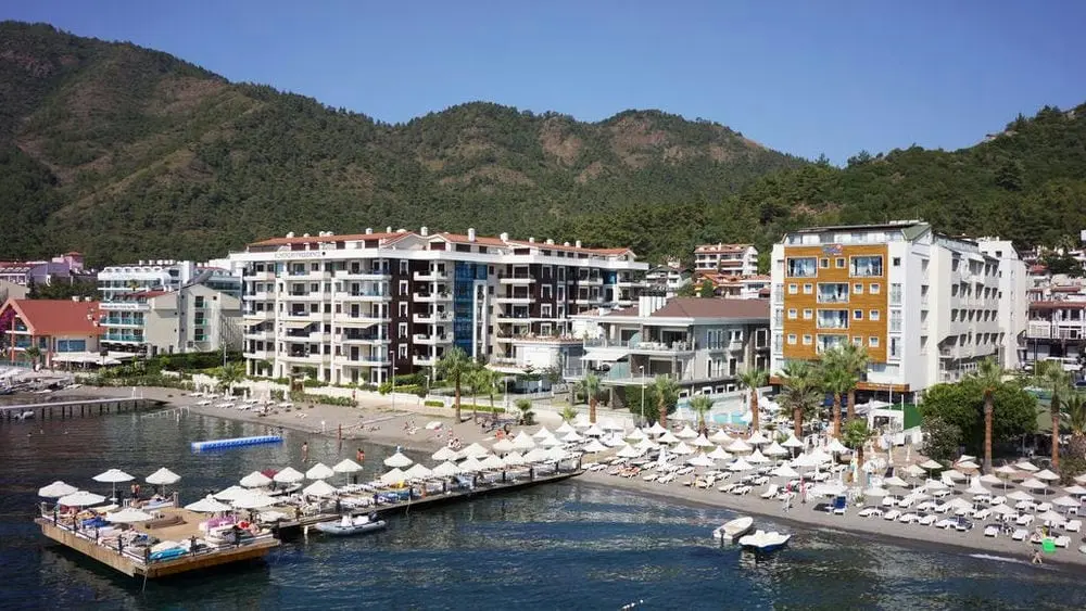 в 100 км от аэропорта г. Даламан, в 135 км от аэропорта Милас Бодрума, в 3,5 км от центра г. Мармарис, на берегу моря.