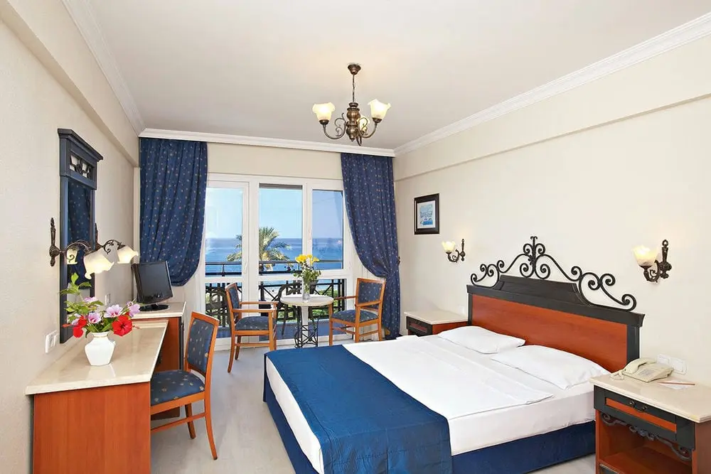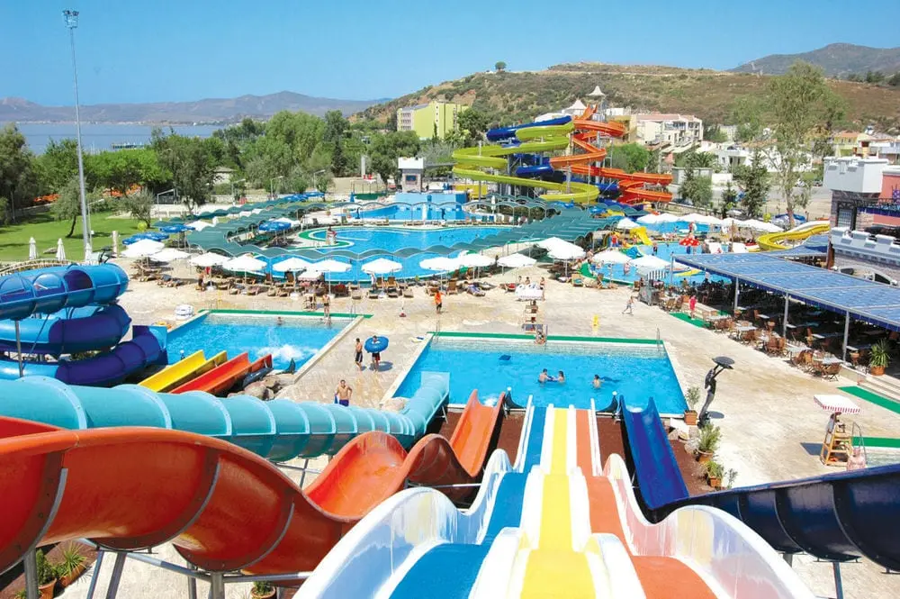 в 40 км от аэропорта г. Измир, в 167 км от аэропорта Бодрума, в 45 км от центра г. Кушадасы, в 2 км от поселка Гюмюльдур, на берегу моря.