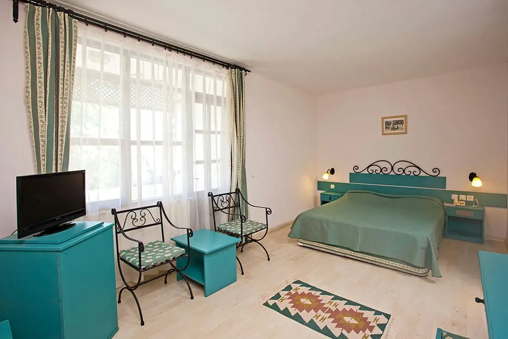 Отель насчитывает 174 номера, с видом на море, бассейн, сад или горы.