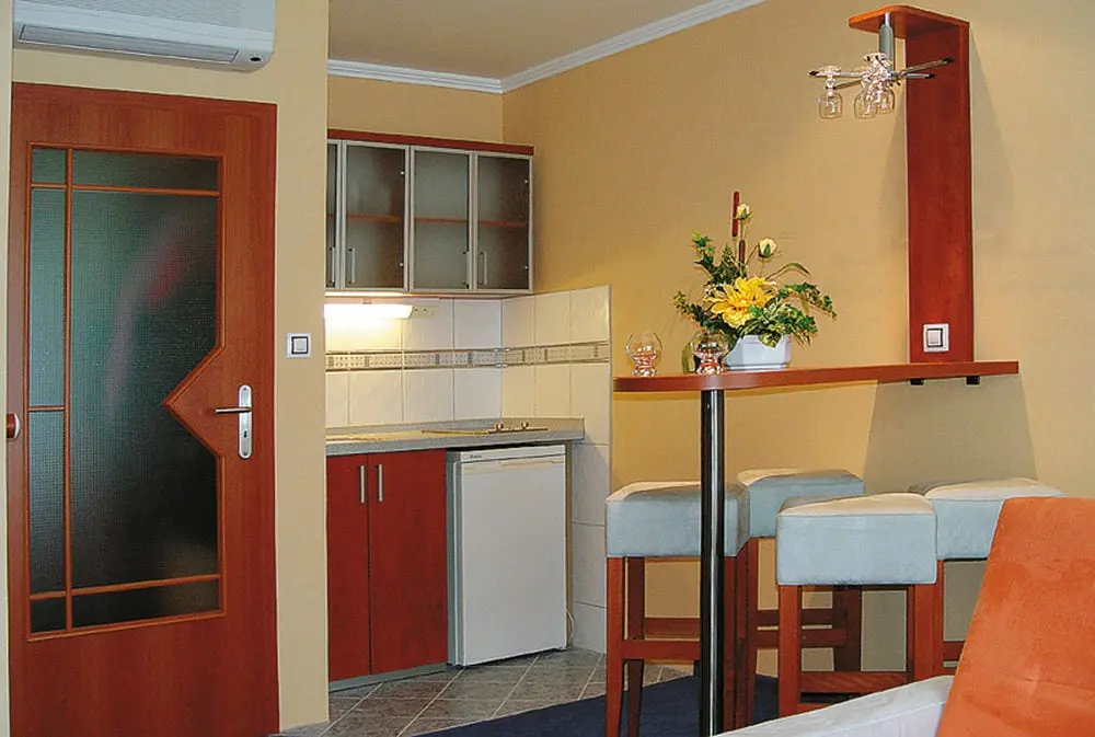 - Apartment Standard (1 номер) - площадь номера 30 м2, двухкомнатный номер с гостинной и спальней, макс. 3 человека (2 человека на главной постели + 1 человек на дополнительной кровати), возможность раздельных кроватей, ванная комната с ванной