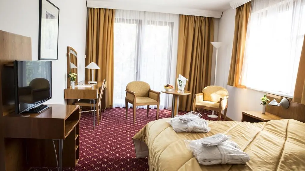 Размещение в комфортно оборудованных номерах с возможностью бесплатного доступа в Интернет (WiFi), лечебные программы для взрослых и детей, а также множество веллнесс-процедур, которые Вы сможете получить в современном бальнеологическом центре отеля, свободный вход в центр отдыха (асимметричный бассейн с массажным водопадом и противотоком, финская сауна, джакузи) - все это предлагает Вам отель Кристалл Палас.
