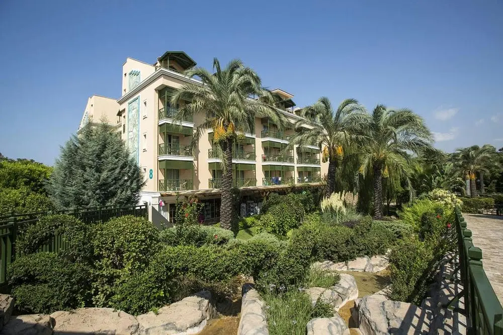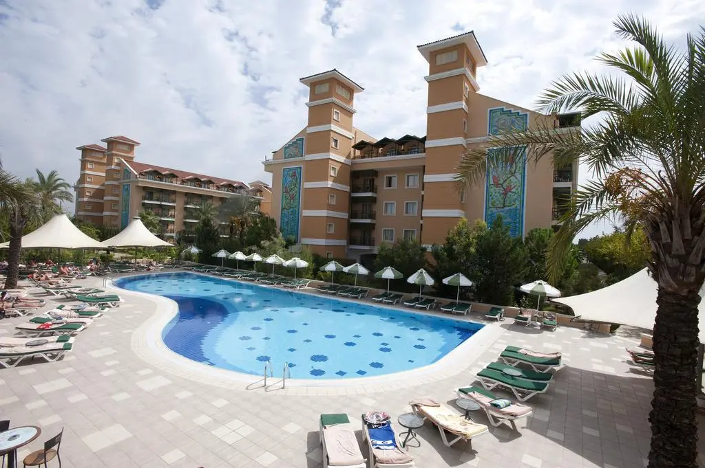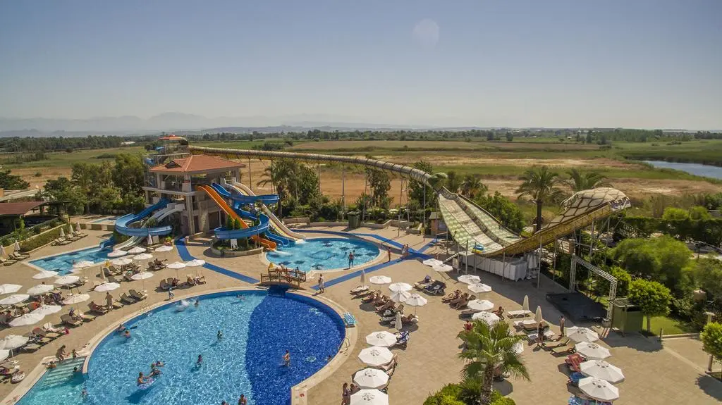 в 40 км от аэропорта, в 50 км от центра г. Анталья, в 11 км от г. Серик, в 400 м от собственного пляжа.