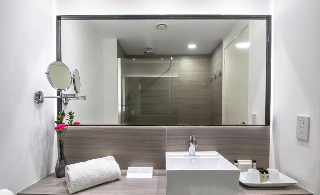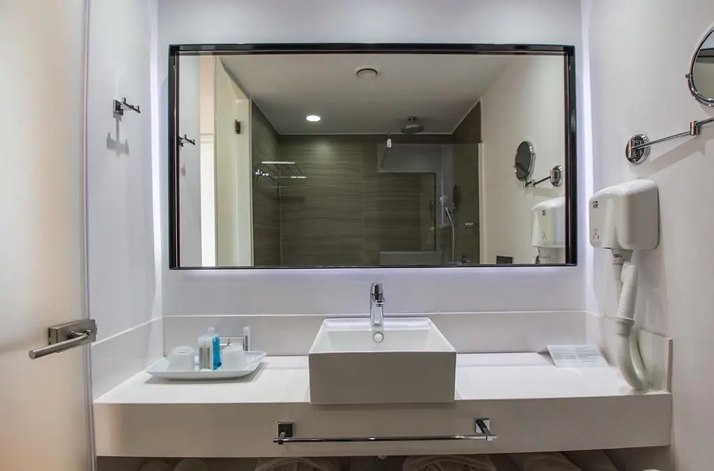 Family Inland View (30 м2, макс. 2+2 чел.) однокомнатный номер, без балкона, вид на внутренний двор, ванная комната.
