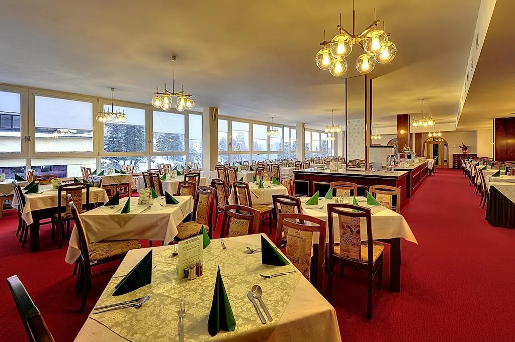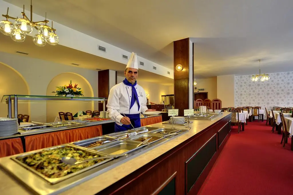 В ресторане: европейская кухня, диетическое питание.