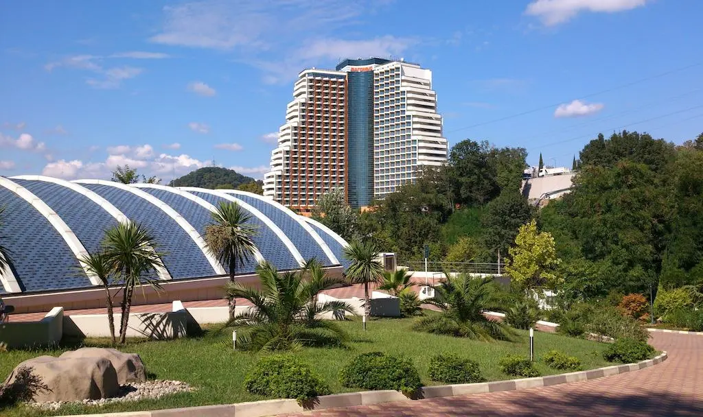 От ж/д вокзала Сочи до комплекса - маршрутное такси № 153, 155к, 155, 141 до остановки "ОК Дагомыс".