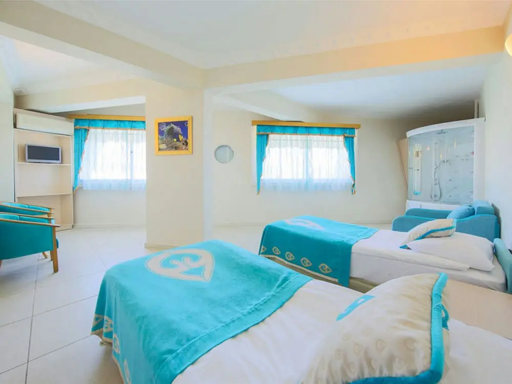 Семейный Номер (С видом на Парк/Море) 60 Номеров / 35-40 т2 / Макс. вместимость: 4+ 1 3 спальни со смежной дверью. 1 Санузел. 1 Французская кровать + 2 Односпальные кровати + 1 Диван-кровать. Балкон или Терраса, Санузел (ванна), Фен, Спутниковое телевидение (телевизор [CD), Телефон в санузе, Прямой телефон, Wi-Fi, Электронный сейф, Сплит-кондиционер, Мини-бар, Зеркало, Система энергосбережения, Водонагреватель, Набор чая и кофе, Керамический пол.