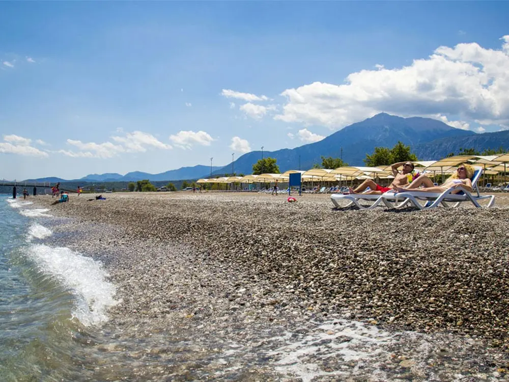 - Пляж: песок и галька.