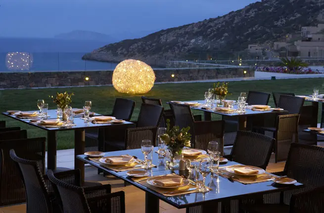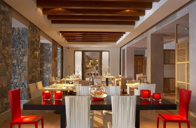 Сервис Residents’ Club для гостей вилл: питание (обед и ужин) во всех ресторанах на ежедневной основе, включая à la carte рестораны, бесплатный выбор блюд по à la carte меню (меню из трех блюд, включая закуски, основное блюдо и десерт на человека, не включает свежую рыбу и лобстера), определенные напитки и фирменные коктейли в барах, одна бутылка вина из отменной винной карты за каждым обедом и ужином, мороженое, прохладительные напитки и свежевыжатые соки для детей в баре на пляже и у бассейна-инфинити, бесплатное 24-часовое обслуживание номера (заказ в номер завтрака, обеда и ужина), мини-бар с брендированными спиртными напитками, пополняемый каждый день, завтрак в ресторане Ocean, подарок для детей при заезде, услуги специального консьержа, частный подогреваемый до +25 градусов бассейн с морской водой, персонализированный освежитель воздуха с эфирными маслами, бутылка игристого вина по прибытии, косметические принадлежности для ванны Apivita. Бесплатно в апреле, мае и октябре. В июне, июле, августе и сентябре - за дополнительную плату.