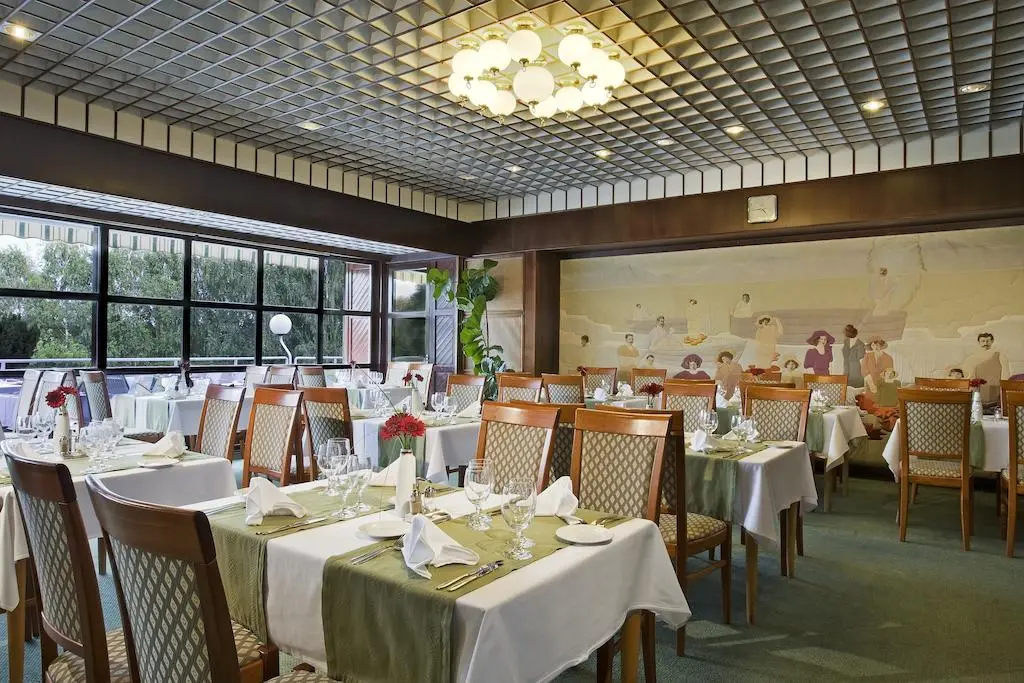 - 12:00 – 14:00 обед шведский стол в рамках меню здоровья «Danubius Healthy Choice»: супы, салаты, овощи, паста, приготовленные на гриле и в воке блюда, пирожные, блинчики, фрукты
