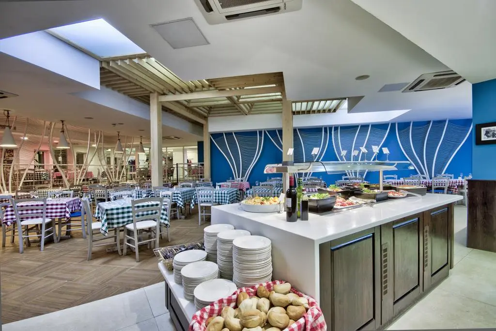 Питание, входящее в стоимость номера, производится в ресторане и состоит из закусок, пиццы, десертов и приготовленных на гриле фирменных блюд. Завтрак «шведский стол» включает в себя мясное ассорти, йогурт, датскую выпечку, фруктовый сок и сухие завтраки. Желающим предоставляется полный английский завтрак.