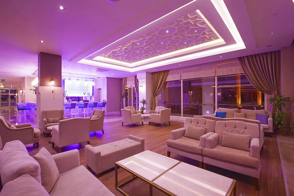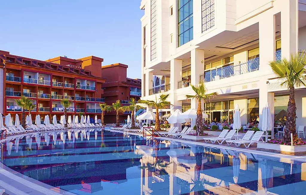 в 55 км от аэропорта г. Анталья, в 10 км от центра г. Сиде, в 300 м от собственного пляжа. Транспорт до пляжа – бесплатно.