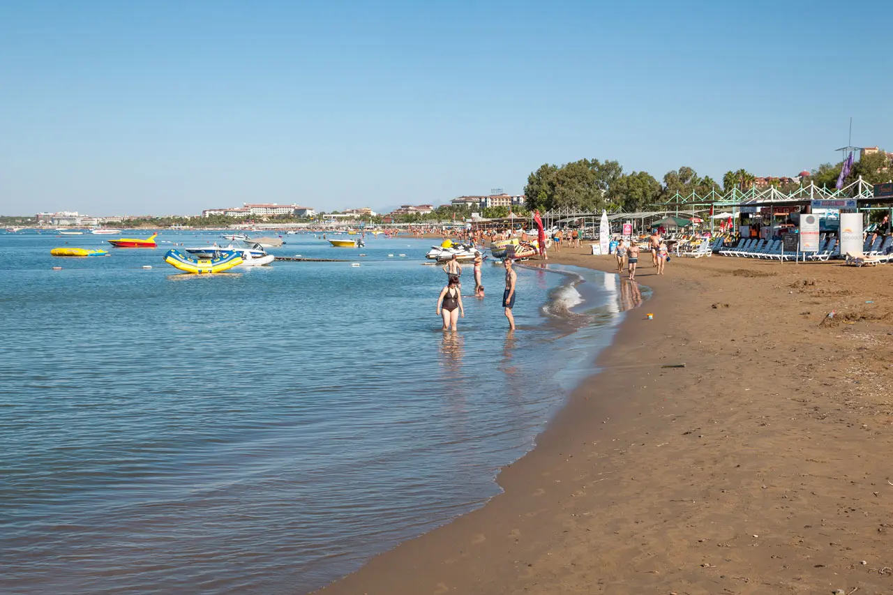 Расстояние до моря составляет 700 метров, собственный песчаный пляж находится 1300 метрах от отеля, через дорогу. Курсирует шаттл на пляж, в определенные часы, бесплатно. Шезлонги, зонтики, матрасы, автобус до пляжа - бесплатно, Пляжные полотенца, бар на пляже, питание и напитки на пляже- платно.