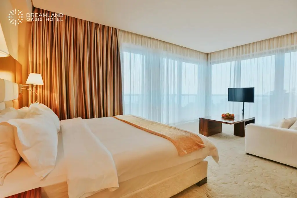 Отель Dreamland Oasis 4* расположен всего в 2 минутах ходьбы от частного пляжа. К услугам гостей аквапарк, 4 бассейна и ресторан традиционной кухни. Во всех номерах есть меблированный балкон с красивым видом и доступен бесплатный Wi-Fi. Прогулка до Ботанического сада Батуми занимает 15 минут.