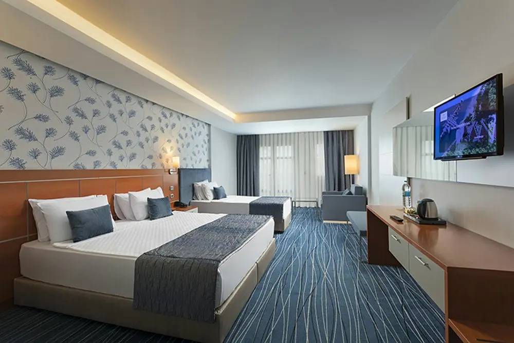 4 ресторана a la carte (турецкий, морепродукты, итальянский, китайский, по предварительной записи, за время проживания посещение 1 ресторана 1 раз – бесплатно)