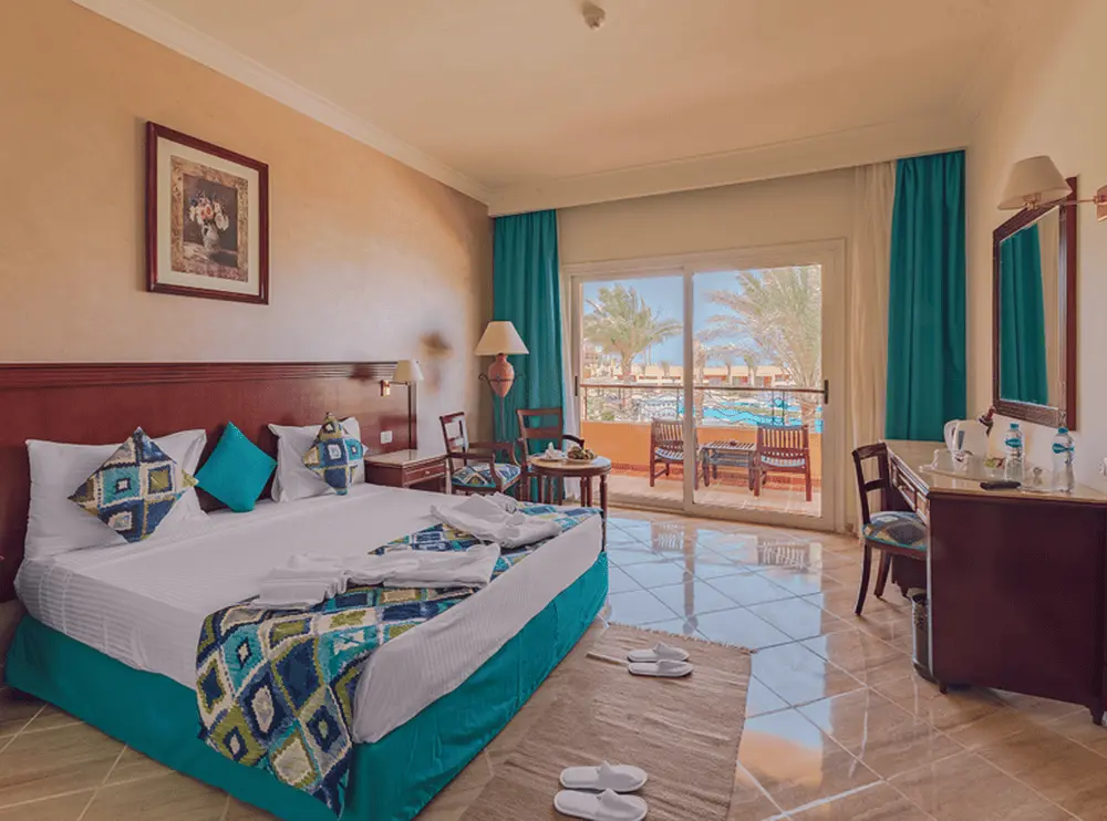 - Standard Room Sea View - 30 м2 , однокомнатный номер с частичным видом на море. В номерах двуспальная кровать или две односпальные кровати. Предоставляется только одно дополнительное спальное место (учитывать при размещении 2+2 / 3+1).