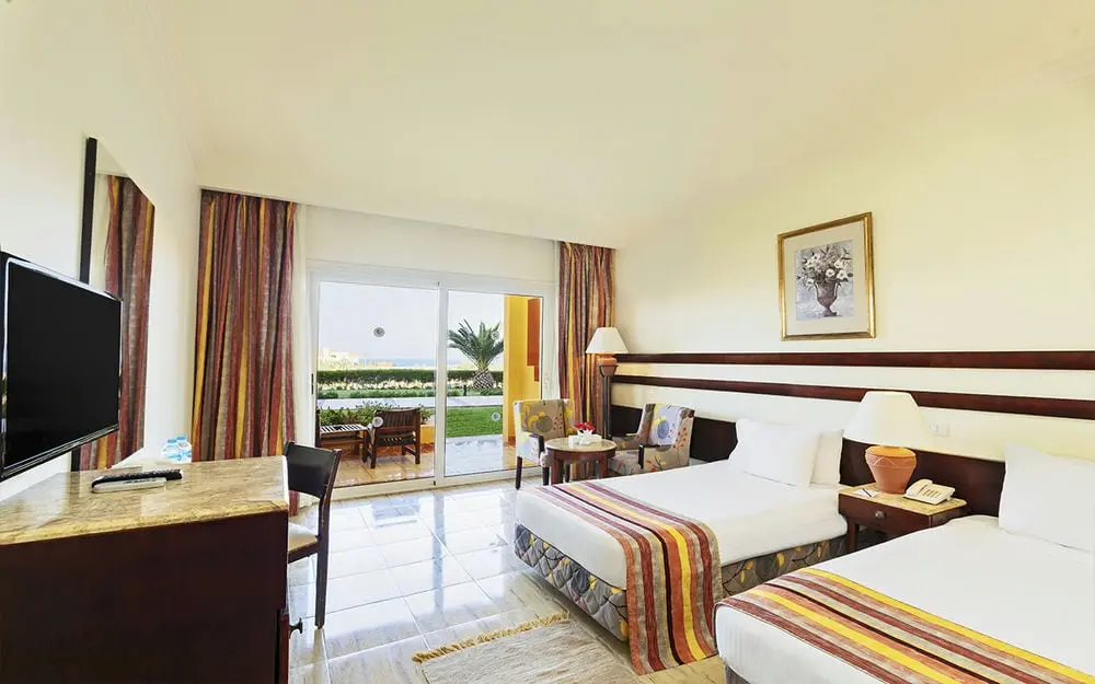 - Standard Room Garden View -30 м2 , однокомнатный номер с видом на территорию отеля /сад. В номерах двуспальная кровать или две односпальные кровати. Предоставляется только одно дополнительное спальное место (учитывать при размещении 2+2 / 3+1).