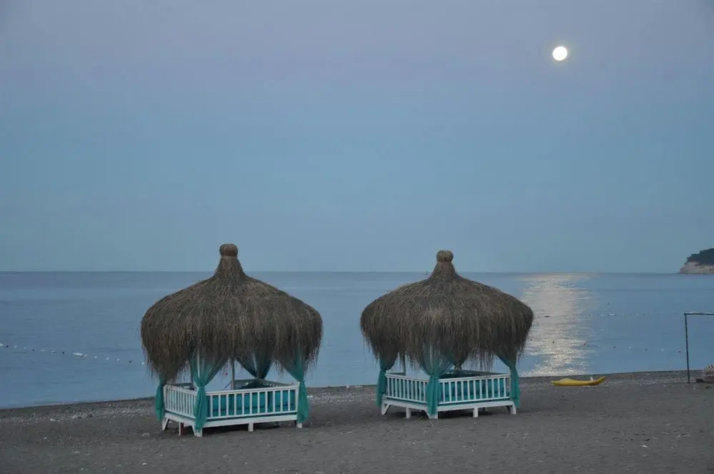 в 55 км от аэропорта г. Анталья, в г. Кемер, в 150 м от собственного пляжа.