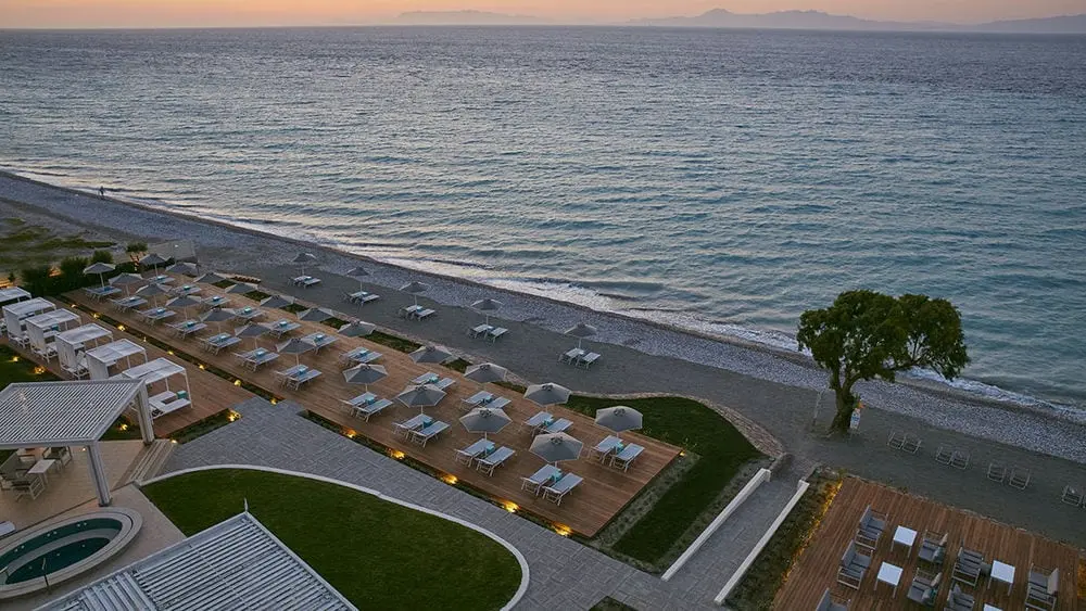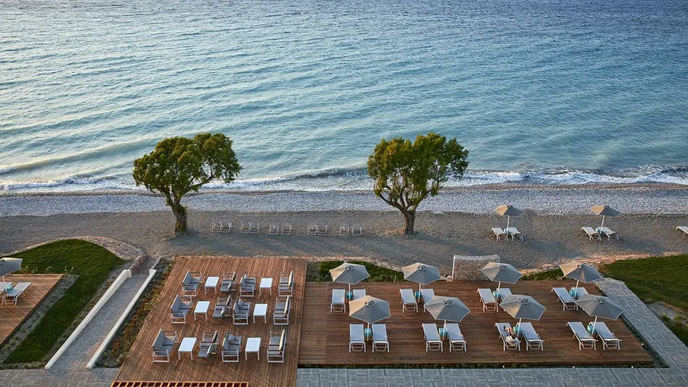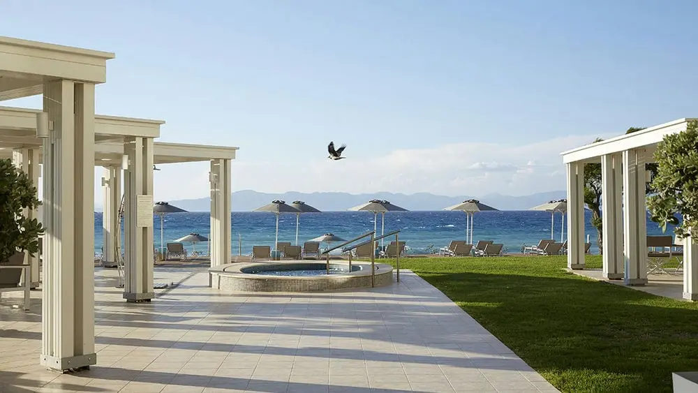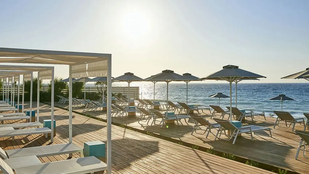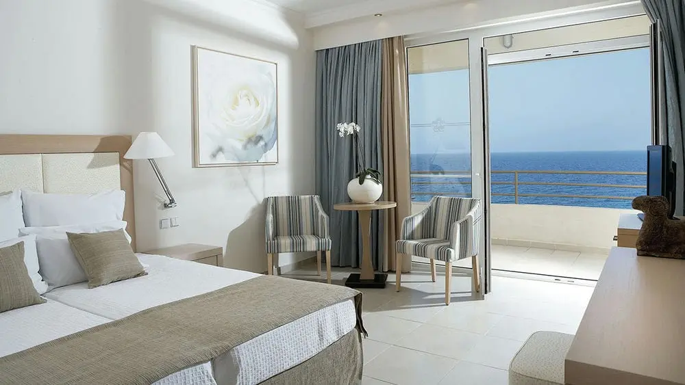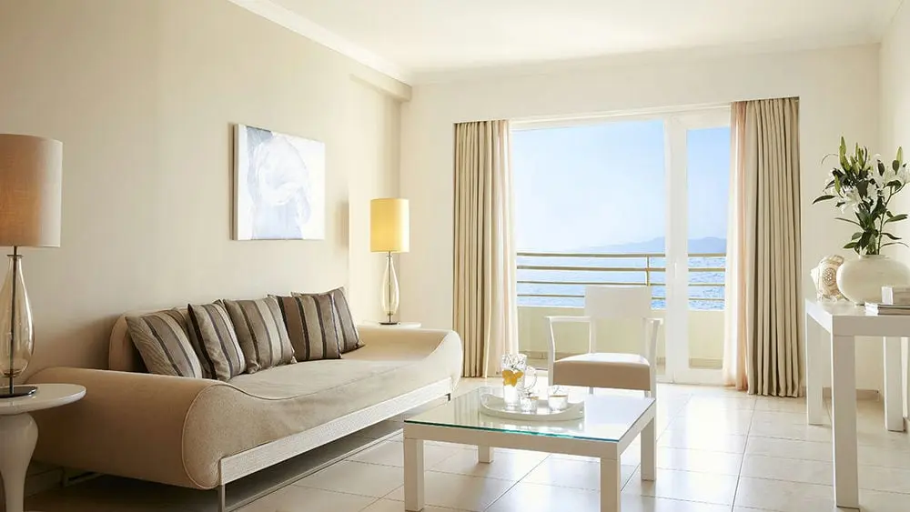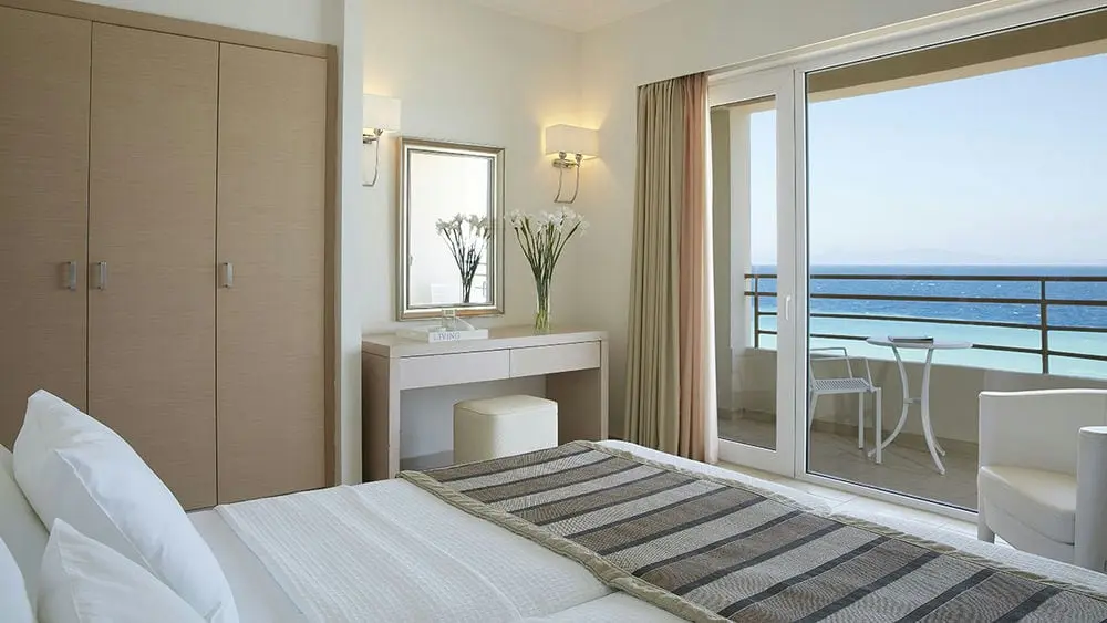 Deluxe Suite Sea View Front - Номера обставлены в стиле люкс, состоят из гостиной с обеденной зоной, спальни с ванной открытого плана, дополнительной ванной комнаты с душевой кабиной, бара заполненного брендовыми напитками и двух отдельных балкона с видом на море.