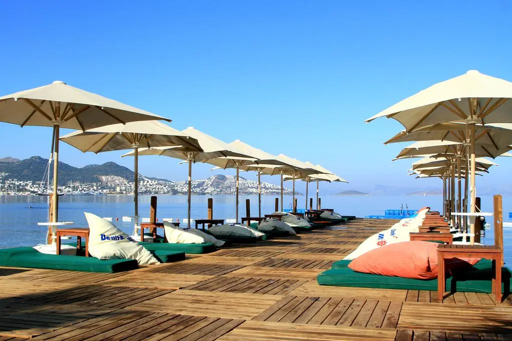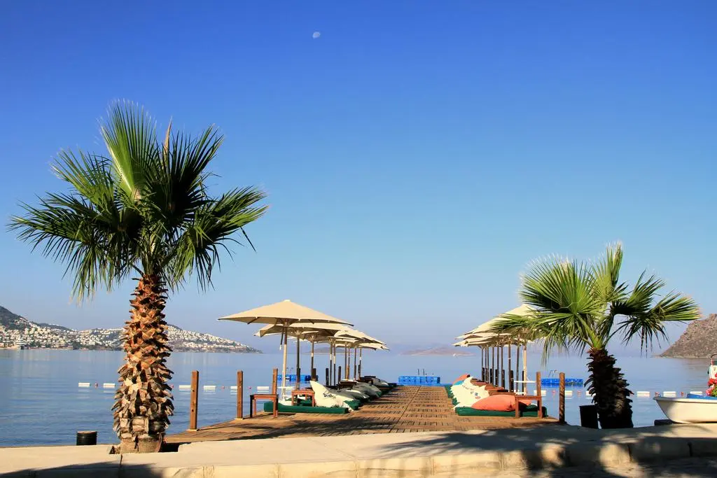 в 50 км от аэропорта Миласа Бодрума, в 235 км от аэропорта Измира, в 218 км от аэропорта Даламана, в 18 км от центра Бодрума, в поселке Ялыкавак, через дорогу от пляжа.