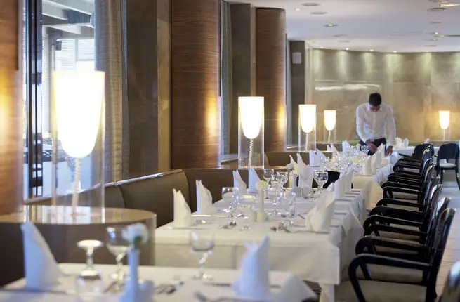 Шведский стол: Ужин-меню: выбор из трех блюд | Часы работы: 07.00-10.00 18.00-21.15 | Тип кухни: Международная, греческая | Дресс-код