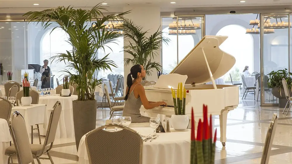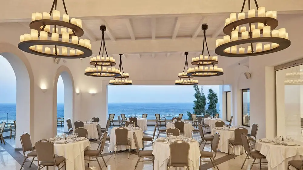 Шведский стол | Часы работы: По программе "все включено": Завтрак: 07.00-10.30 (Шведский стол) / 10.30-11.30 (Континентальный завтрак) / Обед: 12.30-14.30, Ужин: 18.30-21.30 | Тип кухни: Средиземноморская кухня | Дресс-код: мужчинам либо длинные брюки, либо шорты до колен