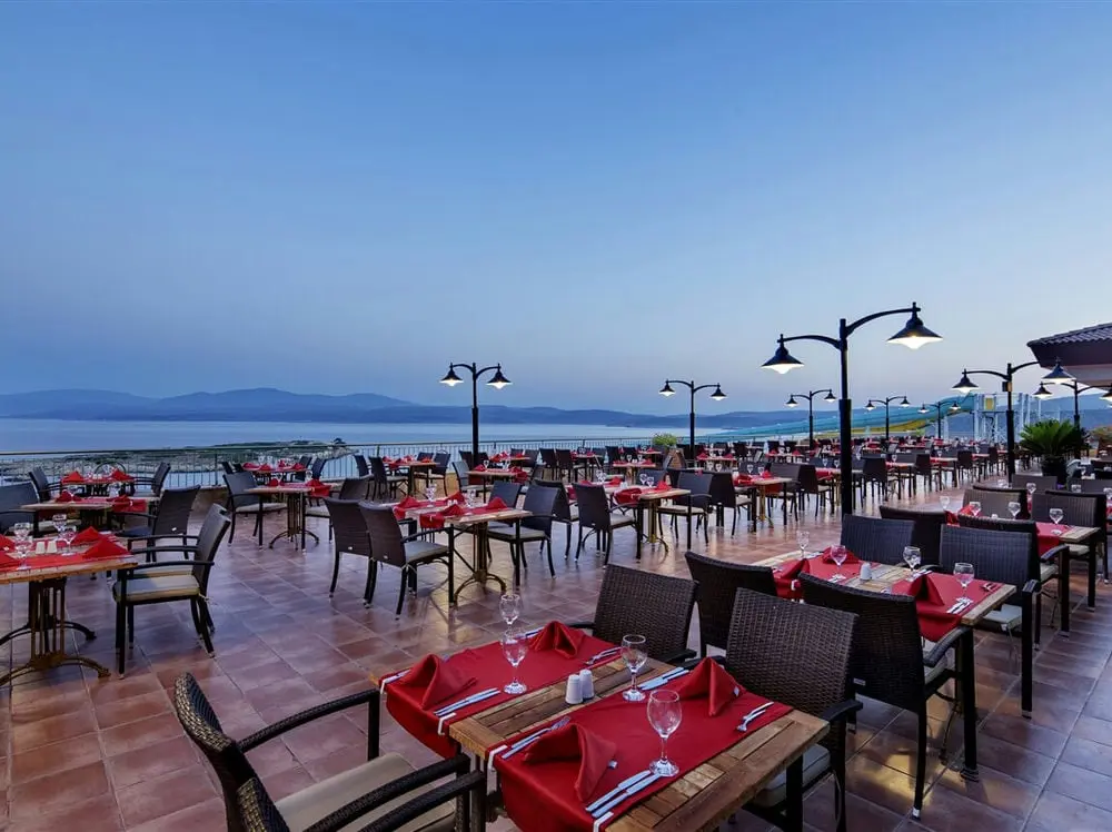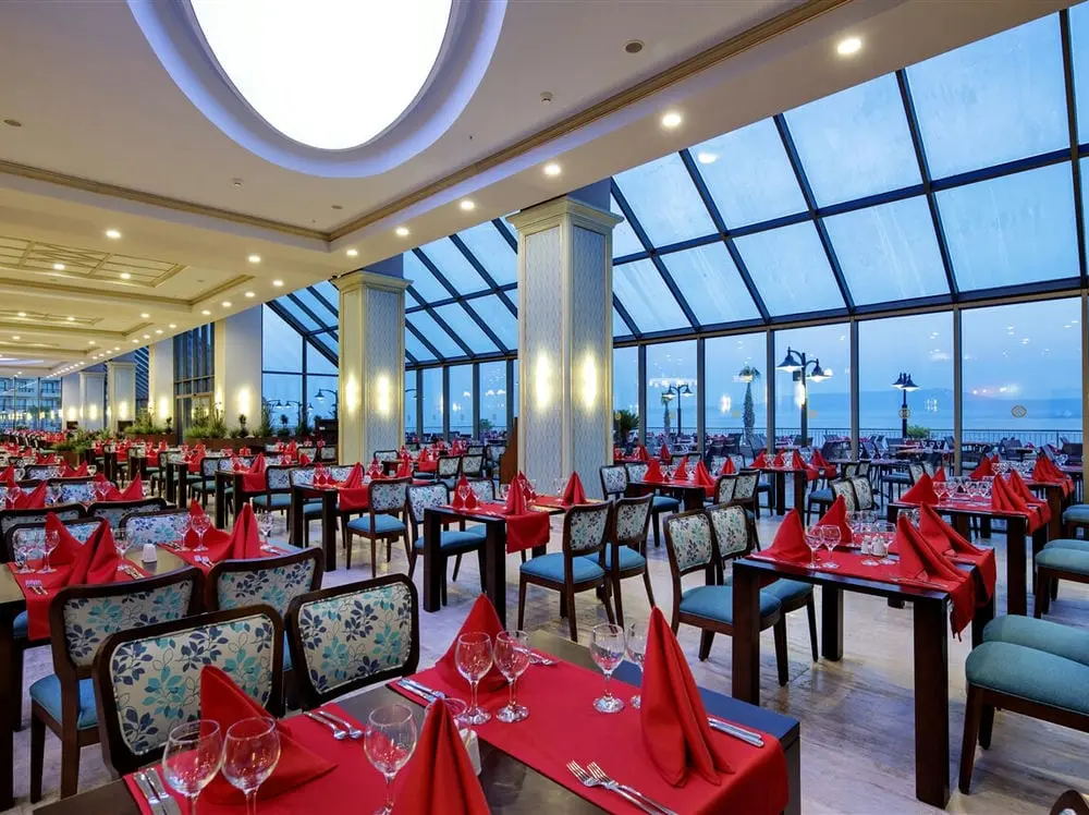 - главный ресторан "Rainbow" предлагает блюда местной и международной кухни- ресторан "Table Magic" предлагает блюда азиатской кухни- ресторан "Ottoman" предлагает блюда Турецко-Османской кухни- ресторан "Deep Blue" предлагает вкус особых блюд Эгейской кухни, котоые приготовены из морепродуктов- ресторан "La Grappa" предлагает различные виды блюд мировой итальянской кухни- бар