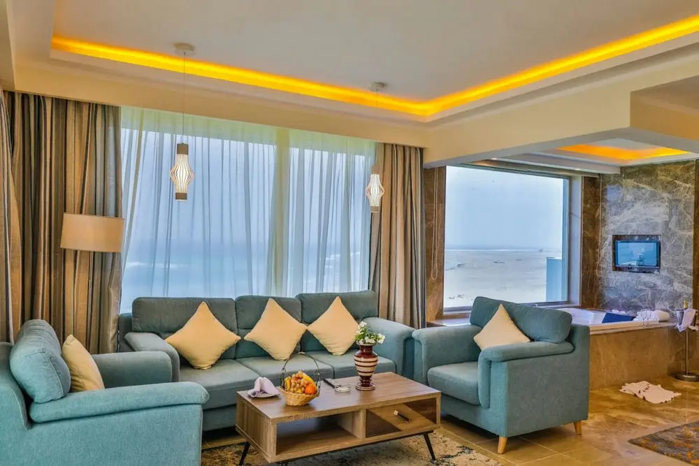 - мини бар (1 безалкогольный напиток, 1 пиво и корзина фруктов предоставляется бесплатно один раз за весь период отдыха, одна бутылка воды пополняется бесплатно ежедневно)